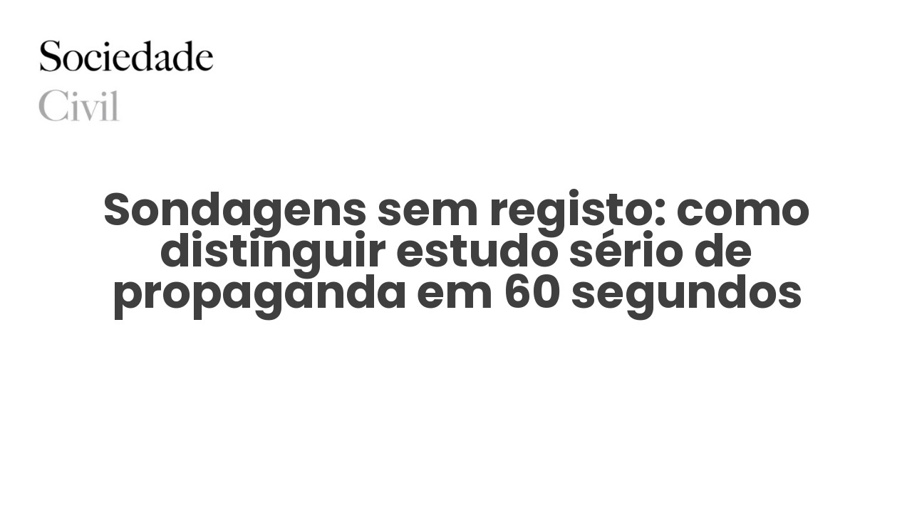 Uma sondagem séria identifica quem fez, para quem, quando, e como. Se não diz nada disto, é propaganda disfarçada. - Ausência de amostra e método