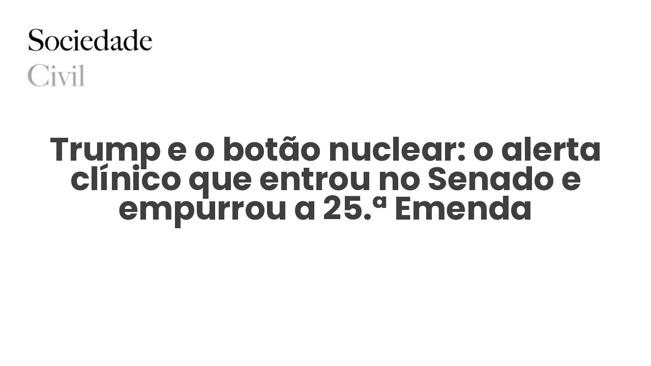 Trump e o botão nuclear: o alerta clínico que entrou no Senado e empurrou a 25.ª Emenda - Sociedade Civil