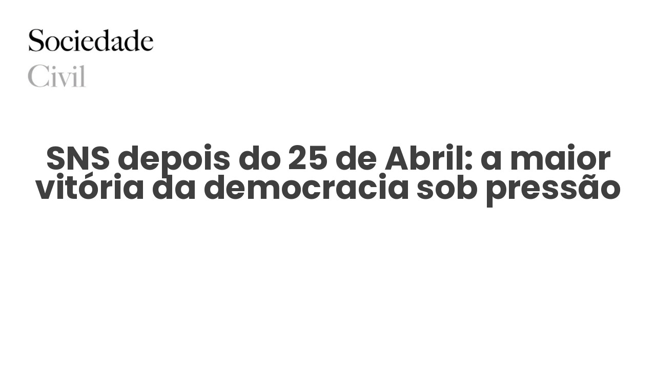 O SNS é uma das expressões mais nítidas do que Abril tornou possível. Sem a rutura democrática e sem a ideia constitucional de Estado Social, dificilmente a saúde teria deixado de depender do dinheiro, do vínculo laboral ou da geografia. O SNS criou uma base de igualdade. Imperfeita, claro. Mas real.
